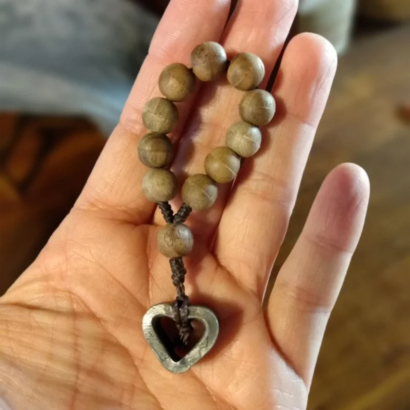 Each of these prayer beads is handmade from the wood stock of the gun and connected to a heart made from the barrel. These prayer beads are great to carry or hold as you pray for peace and healing in our world. Colors and styles may vary.